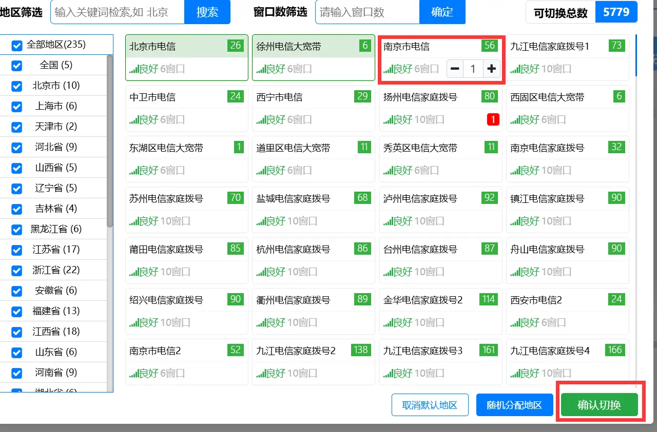 在需要的新地区上设置需要的数量,然后点击确认切换。
