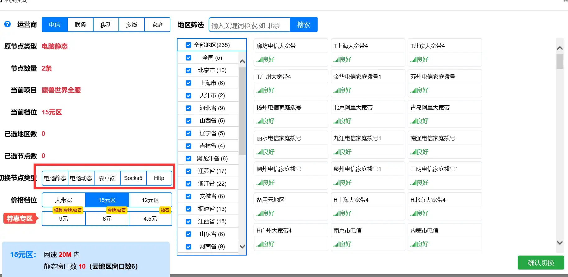 选择 新的节点模式,也可以顺便切换价格和地区,选择好之后 点击右下方 确认切换即可。