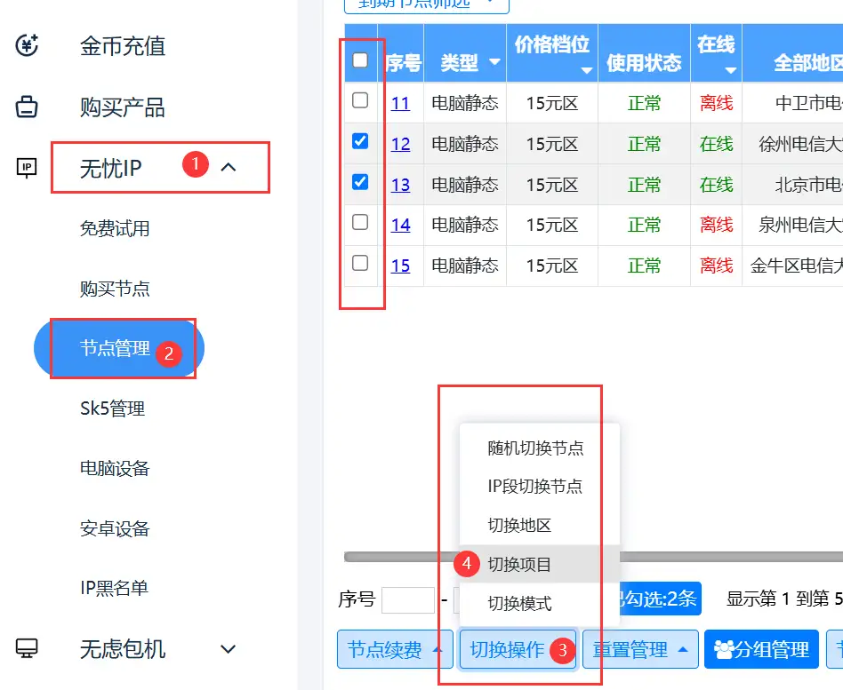 首页 > 使用说明 > 无忧IP > 切换项目