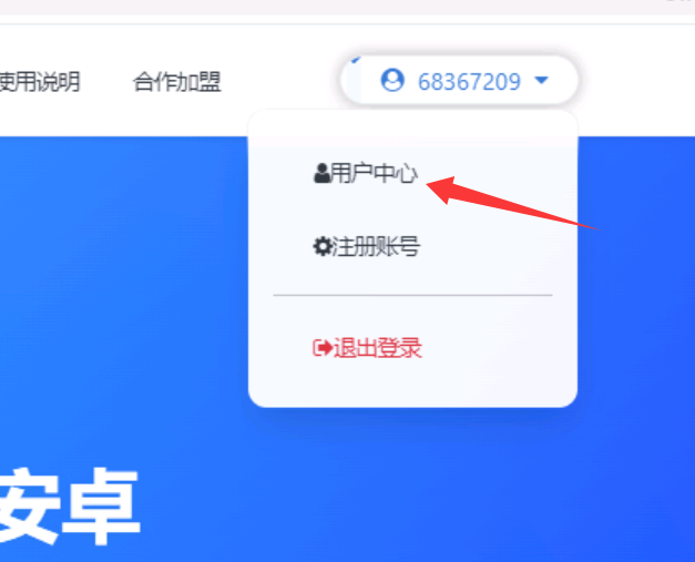 如果已经登录过的,点击上方账号名称,选择 用户中心,就会进入 用户中心后台。
