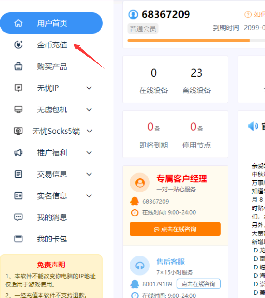 首页 > 使用说明 > 无虑包机 > 金币充值