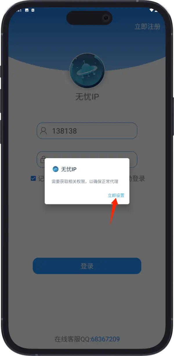 第一次点击登录会提示 代理权限,点击 立即设置,然后选择 无忧IP,把 允许查看使用情况 勾上。
