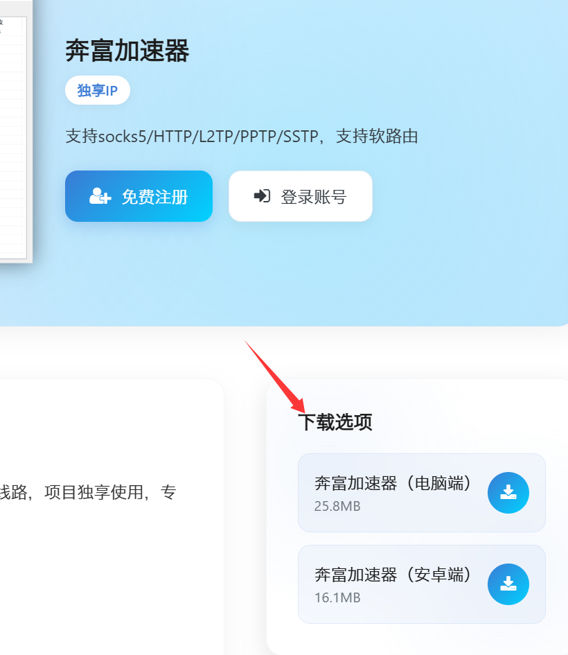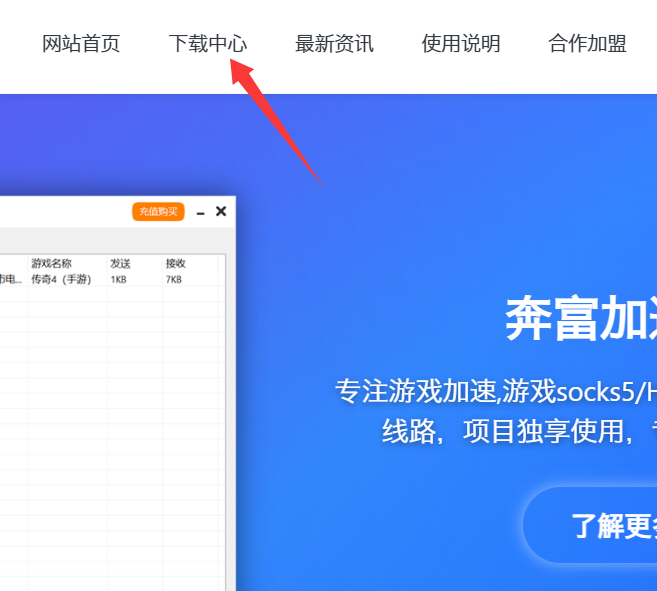 一、点击 下载中心 。 找到 奔富加速器 ,点击进入下载页面。